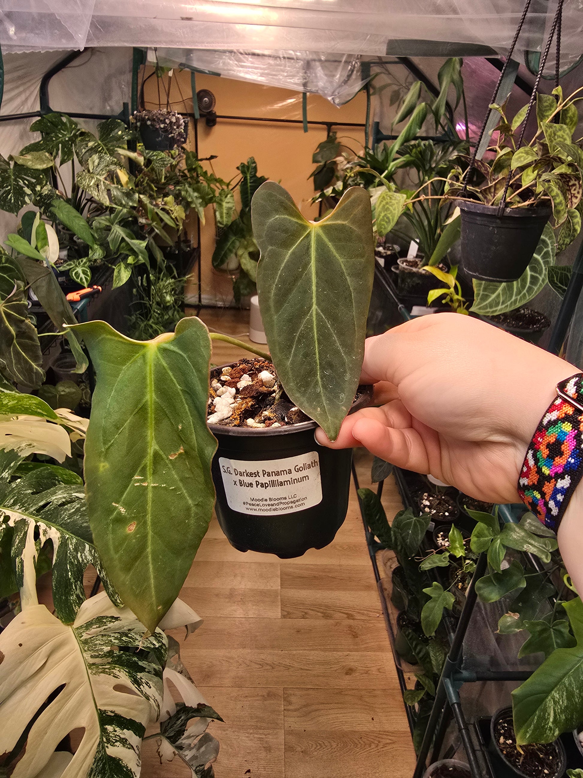 Common Name: Darkest Panama Goliath x Blue papillaminum Anthurium